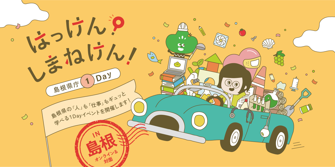 2025/11/17 【参加者募集中!】1Dayイベント「はっけん!しまねけん!」 2025/09/11 1Dayイベント「はっけん!しまねけん!」を県外で開催します! 2025/08/19 島根県庁オンライン交流会を開催します! 2025/07/14 マイナビ転職フェア島根 に出展します! 2025/06/27 2025夏☆島根県警察オープンポリス開催します♪ 2025/06/26 社会人キャリア採用 オンライン説明会 を開催します! 2025/06/23 島根県庁オンライン交流会を開催します! 2025/06/05 高校生向け島根県庁ガイダンス 開催します! 2025/05/28 【参加者募集中!】島根県庁短期仕事体験「ノック!ノック!ケンショク」 2025/05/27 【参加者募集中!】島根県庁オンライン交流会 all newsすべて見る
